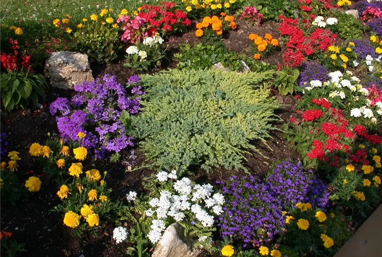 Wer es in seinem Garten, auf der Terrasse oder auf dem Balkon lieber harmonisch haben möchte, der greift zu einer Grundfarbe und deren Farbabstufungen. So ergibt sich zum Beispiel aus Rot ein Arrangement mit Orange und Dunkelgelb. Das wirkt harmonisch auf das Auge und strahlt Wärme aus. Bestimmte Farben sprechen bestimmte Gefühle an. So erzeugen Rottöne Wärme, während Blautöne eher kühl und distanziert wirken. Trotzdem können Blau und Violett ebenfalls harmonisch und beruhigend wirken. Bei der Auswahl der Grundfarbe kommt es ganz darauf an, was arrangiert werden soll. In einem Blumenbeet können mehrere farbliche Zonen gestaltet werden. In einem Kübel oder Pflanzgefäß bietet es sich aufgrund des begrenzten Platzes an, sich auf eine Grundfarbe zu beschränken und die Farbabstufungen drumherum zu platzieren.