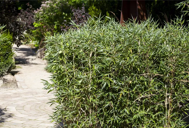 • Eine Einfassung aus kompakt wachsenden oder geschnittenen Pflanzen betont die Wegekante zusätzlich und verhindert Abkürzungen. Geeignet sind z.B. Buchsbaum, Liguster, Berberitze oder Immergrüne Strauch-Heckenkirsche sowie Schnittlauch, Bergenie oder Gamander.