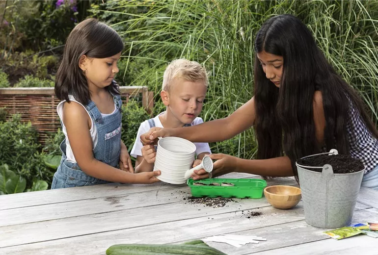Um Wildbienen, Florfliegen und anderen Nützlingen eine Heimat im Garten zu bieten, benötigen sie Futter in Form einer bunten Blumenwiese. Ganz wichtig ist aber auch die Unterkunft. Dazu können Eltern gemeinsam mit ihren Kindern ein Insektenhotel bauen. Kleine Handwerker haben aber auch genauso viel Spaß daran, Vogelhäuser und -bäder oder einen lebenden Zaun zu bauen.