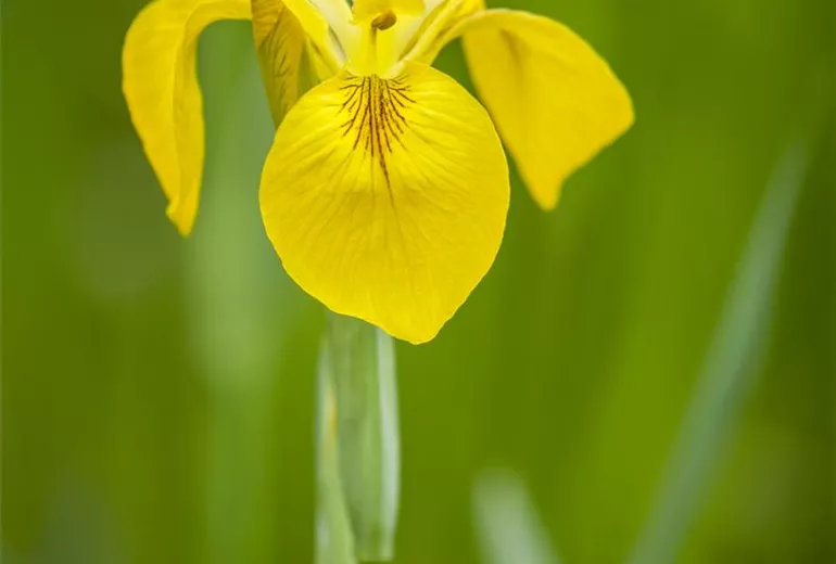 Auch am Wasser braucht man auf Iris nicht zu verzichten. Sie kann sich problemlos mit begleitenden Pflanzen am Ufer des Teichs oder des Bachlaufs abwechseln. Farblich passende Gauklerblumen sind dabei ebenso willkommen wie Schilf und Bambus.