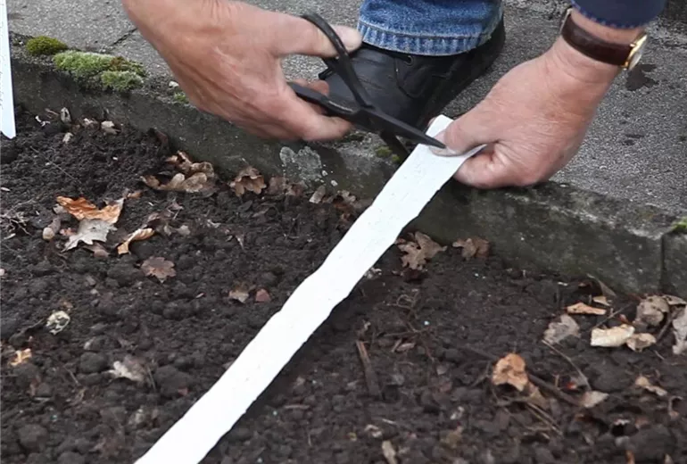 Bevor mit der Arbeit begonnen wird, sollte man sich überlegen, für welche Flächen (Beete, Balkonkästen, Blumenkübel, etc.) die Aussaathilfen vorbereitet werden sollen. Sie machen sich auch gut als Mitbringsel - dann sind Herzformen besonders schön. Für die Saatbänder nimmt man am besten zwei bis drei Blätter Küchenrolle (nicht voneinander getrennt) und schneidet diese in schmale Streifen. Für die Scheiben oder Herzen werden einzelne Blätter des Küchenkrepps entsprechend zugeschnitten. Dazu einen Teller, den betreffenden Pflanztopf oder ähnliches auf das Küchentuch legen mit einem Filzstift oder Kugelschreiber nachzeichnen und ausschneiden. Danach die oberste Schicht des mehrlagigen Küchentuchs vorsichtig abnehmen und beiseite legen.