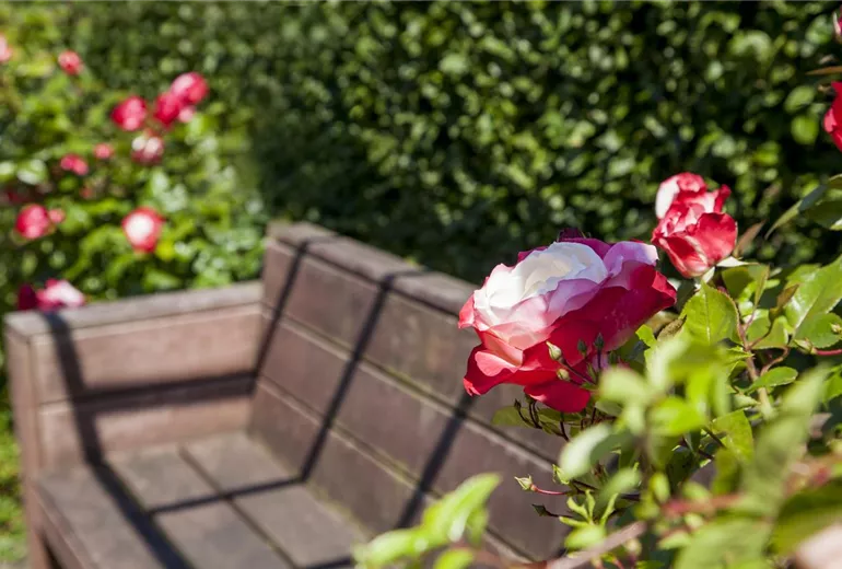 So können Sie bei wenig Platz gerne Paravents, Spaliere und Rosenbögen einsetzen, um Gartenräume und lauschige Ecken zu schaffen. Aber auch halbhohe Hecken, Pflanzkästen, Hochbeete und vieles mehr, können Schutz und Geborgenheit vermitteln und eine Ecke zum Lieblingsplatz erheben.