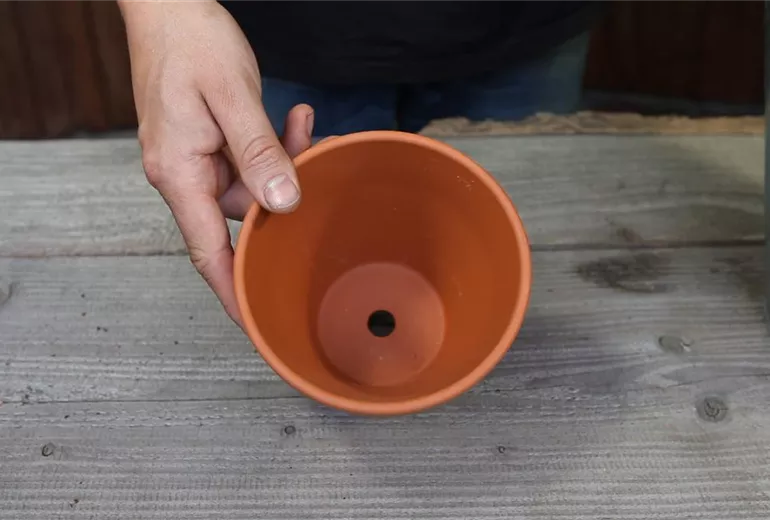 Welche Gefäße auch immer bepflanzt werden, grundlegend ist es, in alle Behältnisse Abflusslöcher zu bohren. Alternativ kann in große Behältnisse, die unter einer Überdachung aufgestellt werden, eine unterste Schicht aus groben Kieselsteinen gefüllt werden.