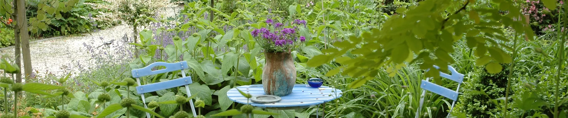 Der Landhausgarten ist gemütlich wie ein Wohnzimmer, nur mit viel mehr Pflanzen und etwas zu naschen in Griffweite. Wer keinen hat, kann sich schnell einen zulegen. Schon ein Teil des Gartens reicht, um ihn zum anheimelnden Rückzugsort zu machen. Einfach mit einer Hainbuchenecke oder einem begrünten Sichtschutz abgrenzen! Den Weg dorthin nicht gerade und direkt gestalten, sondern geschwungen und geschmeidig. Den Eingang zum kleinen Paradies umrankt am besten schon mal eine Clematis, sie stimmt mit ihrem natürlichen Charme auf die Atmosphäre ein. Dann wird es wildromantisch bis rustikal-gemütlich. Natürlichkeit ist gefragt. Also bitte keine hochgezüchteten Rosen, auch keine mit Schönheitspreis. Im Landhausgarten fühlen sich Stock- und Kletterrosen wohl, ebenso alle alten Rosensorten. Viele gleichen mit ihrem betörenden Duft aus, dass sie nur einmal im Jahr blühen. Weiter geht die Aromaparade mit Lavendel und Minze. Außer an die eigene Nase auch an die Insekten denken? Da steht die Duftnessel parat.