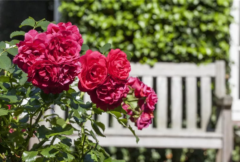 Verbunden werden die Gartenräume durch Wege. Überlegen Sie, welche Wirkung Sie mit ihnen erzielen wollen. Geschwungene Wege verlängern das Grundstück und sorgen für Dynamik, gerade Pfade mit hellem Belag können dem Garten räumliche Tiefe geben. Jeder Weg sollte ein Ziel haben (eine Terrasse, eine Bank oder Skulptur), optisch wird der Garten verlängert, wenn der Fixpunkt, etwa ein mächtiger Solitär, außerhalb des Grundstücks liegt. Schenken Sie auch der Randgestaltung einen Gedanken: Gepflegt wirken Randsteine als Abschluss, harmonisch und abwechslungsreich Pflanzen, die von den Rabatten aus in den Weg hinein wuchern dürfen. Unschön und lästig beim Rasenmähen sind Kieselsteine, die mit der Zeit in den grünen Freizeitteppich hineinwandern. Um den Übergang von einem „Zimmer“ ins nächste zu markieren, bieten sich Rosenbögen aus Metall oder Holz an. Der Garten gewinnt durch sie an vertikalen Strukturen.