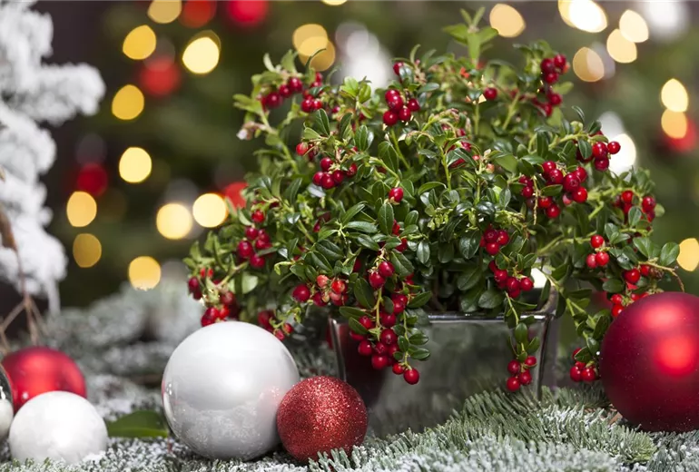 Der Brauch in der Weihnachtszeit einen Mistelzweig über den Rahmen der Haustür zu hängen ist in den USA und England weit verbreitet. Wenn sich dann ein Pärchen darunter trifft, heißt es „Kissing under the Mistletoe“. Pro Kuss wird dann nach dem Brauch eine der weißen Beeren gepflückt. Sobald keine Beeren mehr am Mistelzweig hängen, ist es mit dem Küssen vorbei. Aber auch bei uns werden Mistelzweige gerne geschnitten, als Strauß mit dekorativen Schleifen gebunden und als Glücksbringer an die Haustür gehängt. Aber warum denn die Mistel? Sie gilt schon seit langer Zeit als mythische Pflanze. Die immergrüne Pflanze ist nämlich aufgrund ihrer heilsamen Wirkungen sehr beliebt. In der modernen Pflanzenheilkunde werden Extrakte des Krauts beispielsweise gegen Arthrose, Blutdruck, Rheuma, Tumore und viele andere Leiden eingesetzt. Neben den gesundheitlichen Aspekten haben Misteln (Viscum album) aufgrund ihrer attraktiven Form und den hübschen weißen Beeren einen sehr dekorativen Charakter.