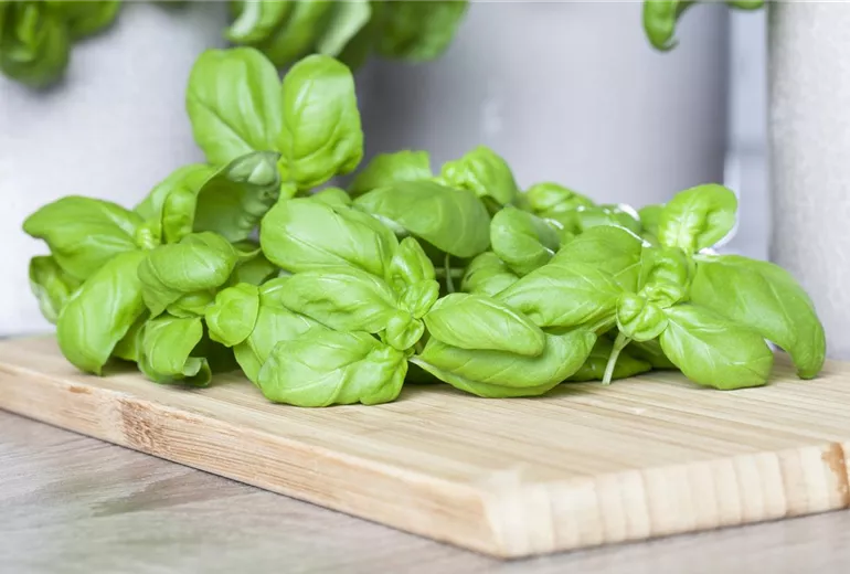 Tipp: Basilikum ist in immer neuen Sorten erhältlich. Probieren Sie doch mal Orangen-Basilikum ( Ocimum americanum ) mit würzigem Bergamottaroma oder Neapolitanisches Basilikum mit seiner pfeffrigen Note. Auch Sorten mit Anis- oder Zitronenaroma bringen frischen Wind in die mediterrane Küche!